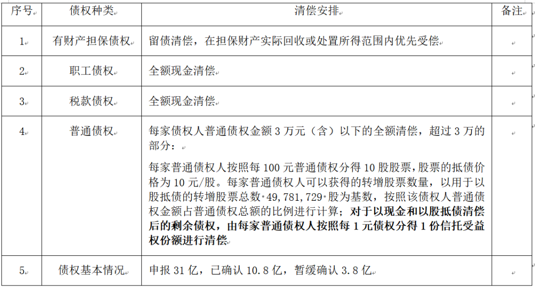 (2)债权清偿安排