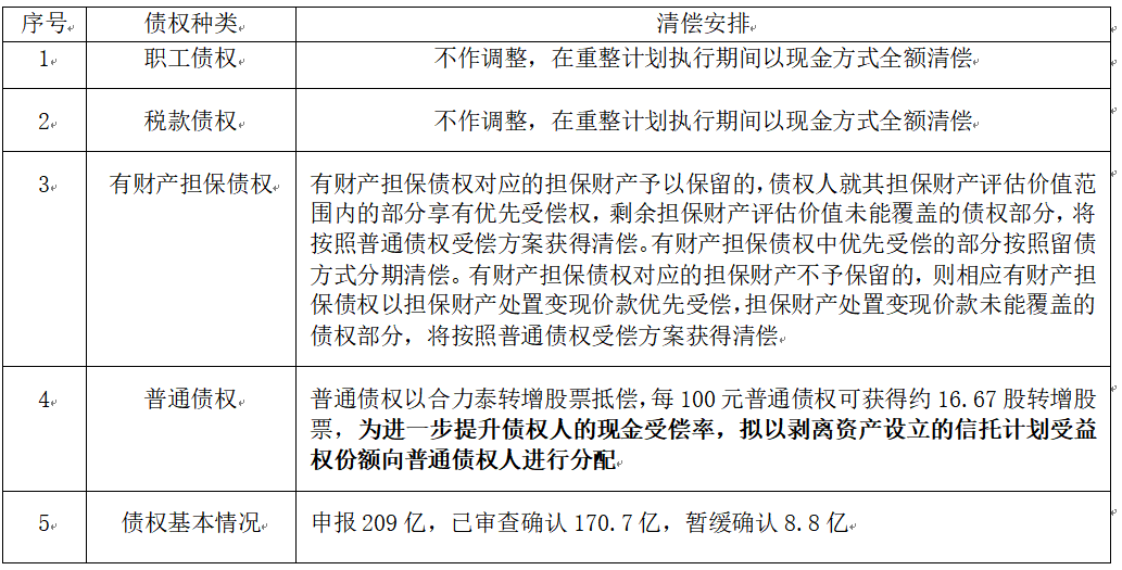 另外,合力泰案件的信托份额清偿是在资本公积转增股票理论全额清偿之后的补充清偿,信托份额的清偿不影响普通债权的名义清偿率,但会充实对债权人的利益保障安排。