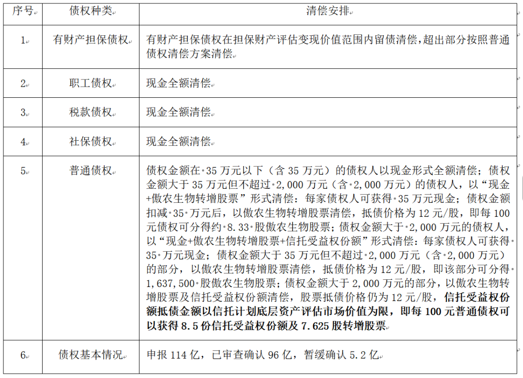 2024年2月5日,漳州中院同意傲农生物启动预重整。2024年11月5日,漳州中院裁定受理傲农生物重整。2024年12月9日福建漳州市芗城区人民法院裁定批准傲农生物重整计划,2024年12月27日,福建漳州市芗城区人民法院裁定重整计划执行完毕。