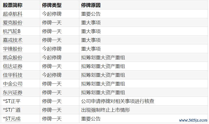 A股停牌提示:13股今日停牌A股停牌提示:13股今日停牌