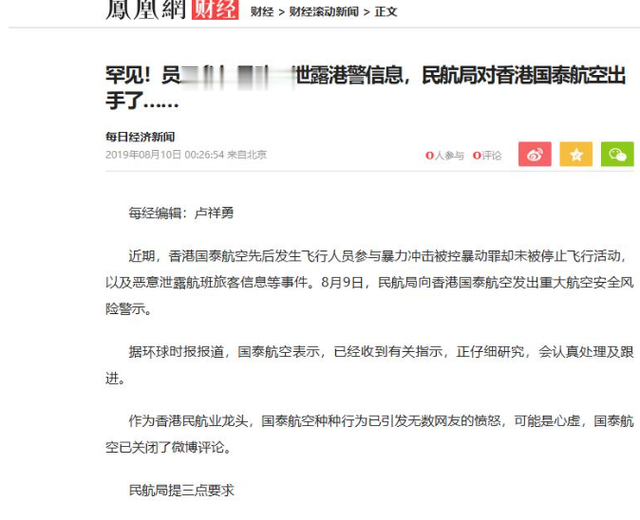 显然,国泰高层以为这样就能拿捏内地的命门,逼迫内地政府修改航空条令。
